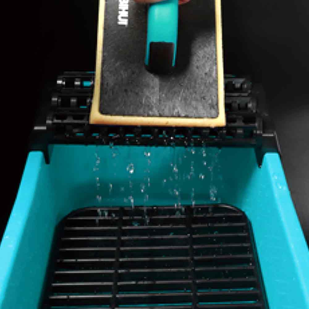 Bihui TWS19A posuda za fugovanje je visokokvalitetni alat namijenjen profesionalnim keramičarima. Posuda kapaciteta 19 litara dolazi s integriranim točkićima i plastičnom rešetkom, što omogućava lako rukovanje i čišćenje alata. Opremljena je trostrukim valjcima i ergonomskom TPR drškom, osiguravajući jednostavno korištenje prilikom fugiranja pločica. Alat je dizajniran za dugotrajnu upotrebu u zahtjevnim uvjetima.