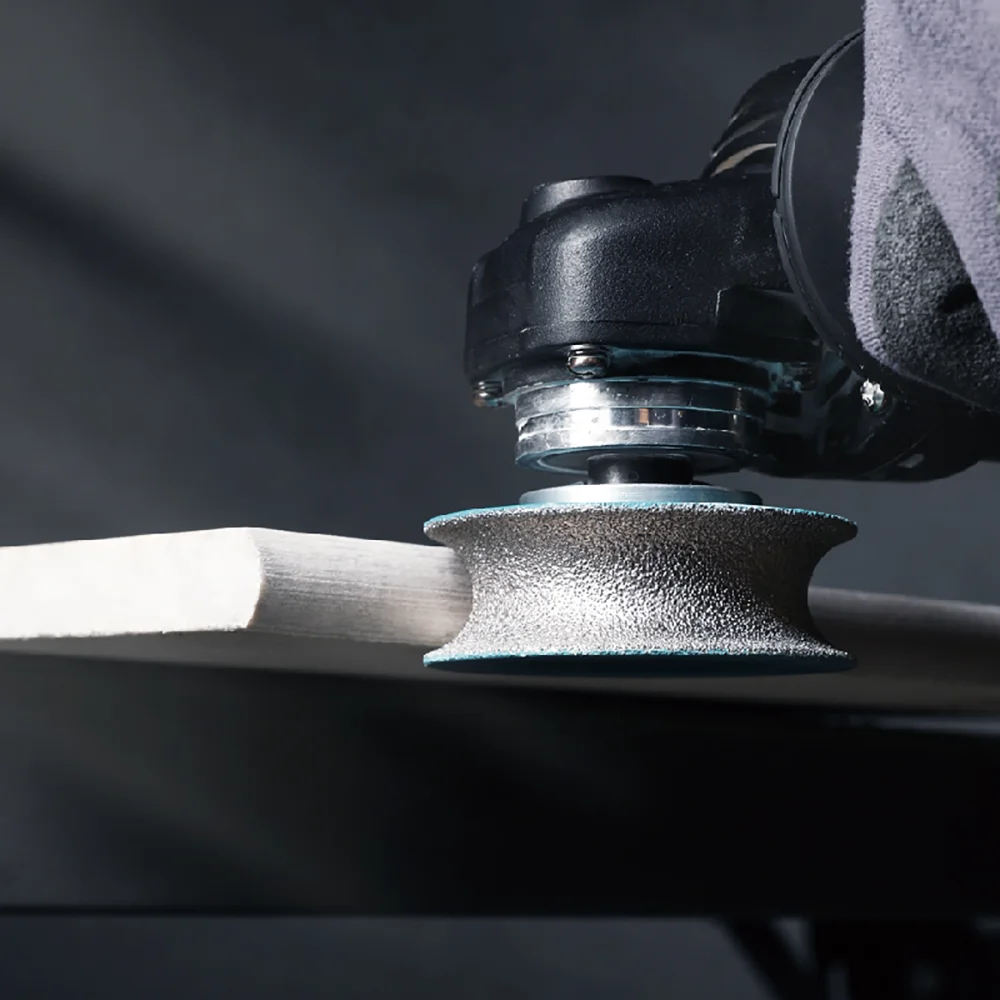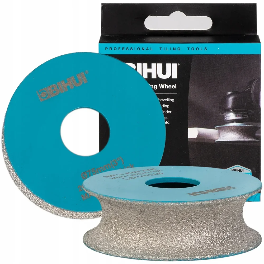 BIHUI bullnose dijamantni brusni točak Ø75 mm je specijalizirani alat srednje granulacije namijenjen za precizno zaobljavanje ivica na keramičkim pločicama i prirodnom kamenu. Omogućava formiranje urednih i ravnomjernih radijusa, što je posebno pogodno za obradu lajsni, radnih ploča, stepenica i ivica bazena.