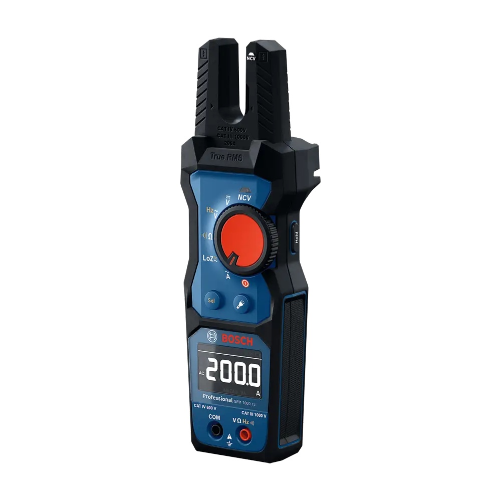Bosch GFM 1000-15 Professional je napredni multimetar s vilicom, posebno razvijen za brza i pouzdana mjerenja u profesionalnim uvjetima. Zahvaljujući otvorenim čeljustima, omogućava mjerenje izmjenične struje do 200 A bez potrebe za ispitnim vodovima, što značajno ubrzava rad i smanjuje prekide u strujnim krugovima. Pored toga, mjeri AC/DC napon do 1000 V, otpor, provodnost i frekvenciju, a integrirana LoZ funkcija osigurava precizna očitavanja i smanjuje rizik od lažnih napona.