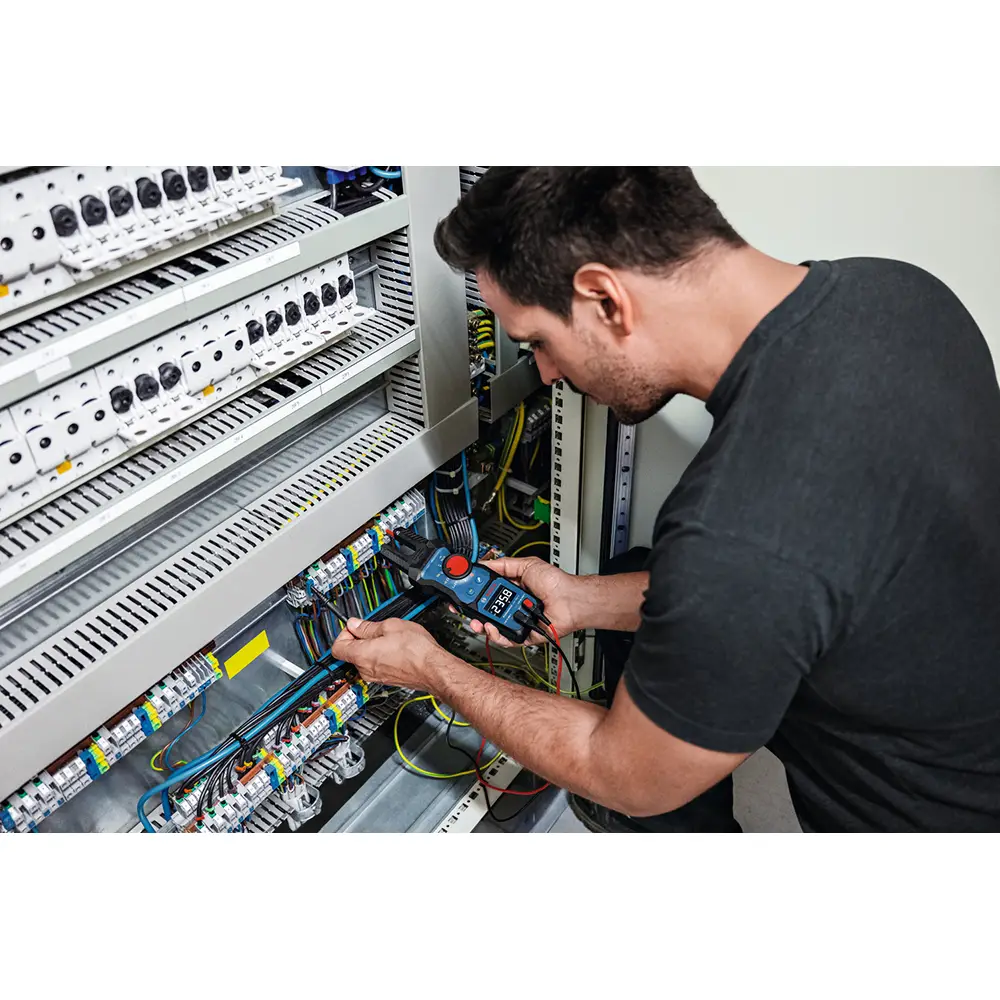 Kompaktan dizajn, udobna ručka i zaštita klase IP54 čine ga idealnim za gradilišta i druga zahtjevna okruženja. Uređaj je testiran na otpornost pri padovima do 2 m, što dodatno potvrđuje njegovu robusnost i pouzdanost. Veliki invertirani LCD zaslon, True RMS tehnologija i funkcija zadržavanja očitanih vrijednosti čine rad preciznim i praktičnim, dok beskontaktni detektor napona (NCV) i integrisana svjetiljka povećavaju sigurnost i jednostavnost upotrebe. U kombinaciji s MH 1 Professional magnetnim rješenjem za vješanje, omogućava rad bez upotrebe ruku i maksimalnu fleksibilnost u skučenim prostorima.