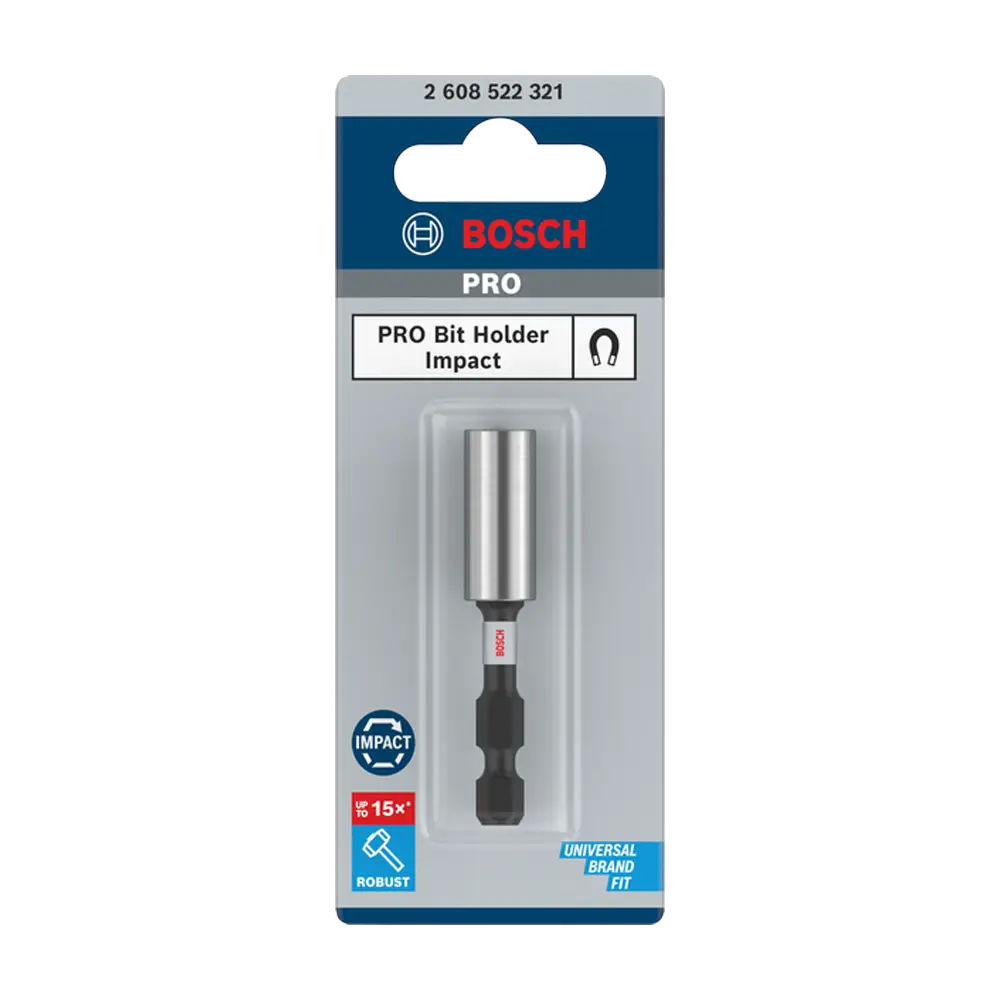 PRO Impact držač bitova pruža izuzetnu izdržljivost i stabilnost pri uvrtanju vijaka čak i u najzahtjevnijim uslovima. Dizajniran da traje do 15 puta duže od standardnih Bosch držača, savršen je izbor za rad s udarnim odvijačima i akumulatorskim bušilicama.