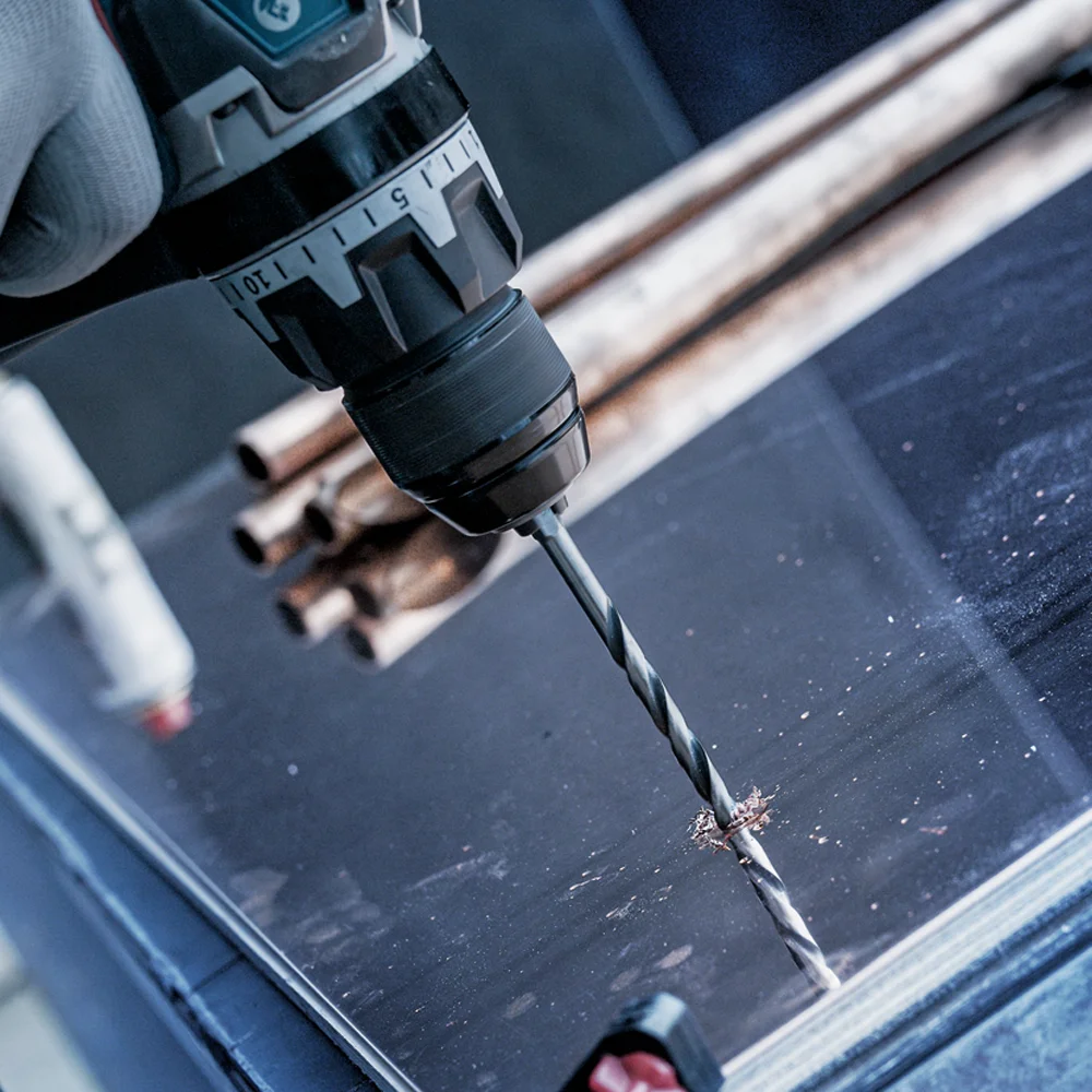 Svrdla su izrađena prema standardu DIN 338, tip N, s vrhom pod uglom od 135°. Zahvaljujući vrlo elastičnom tijelu i spirali premazanoj crnim oksidom, rizik od lomljenja je smanjen, čak i pri zahtjevnijim radovima u metalu.