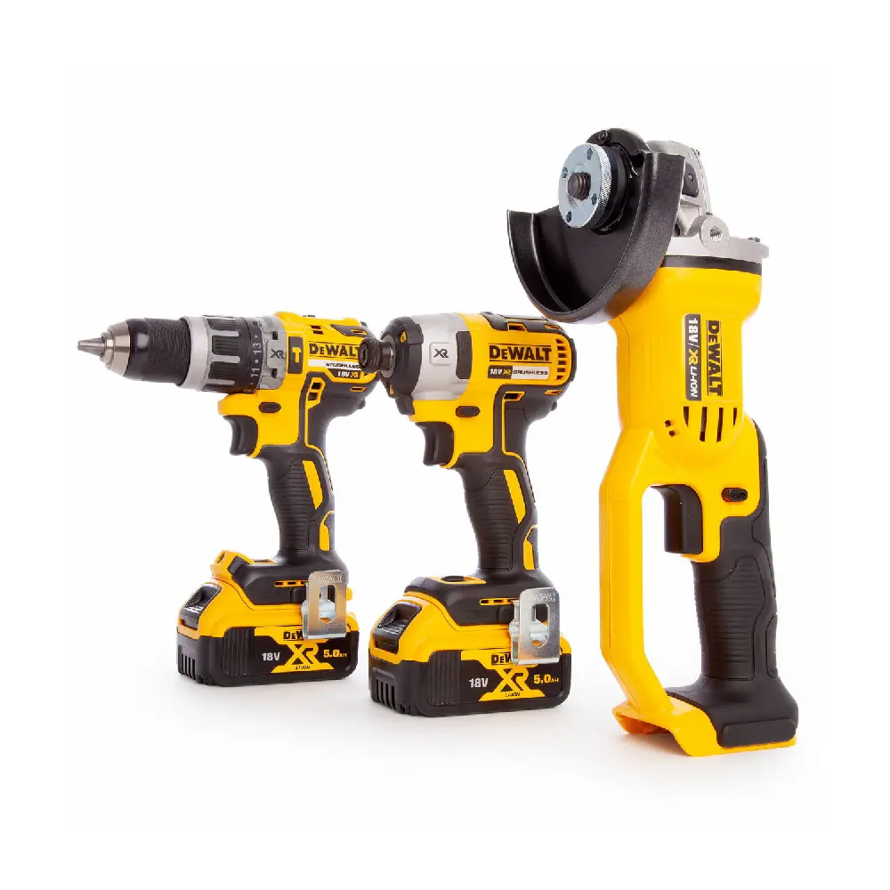 DeWALT Aku set XR 18V DCK383P2T (Bušilica, Udarni odvijač, Brusilica) + 2x Baterija 5.0 Ah, Punjač i Kofer