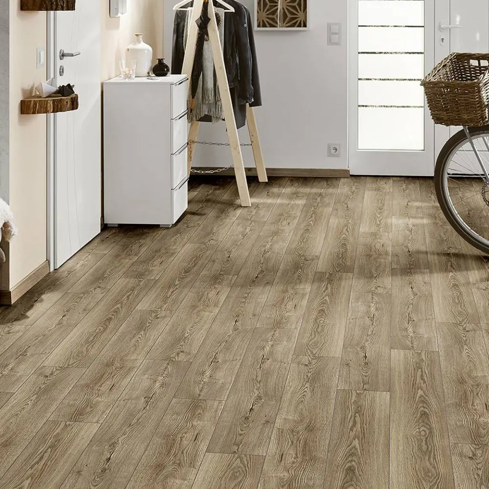Twilight Sterling Oak iz kolekcije Super Natural Classic nudi živahan spoj bež i sivih tonova s izraženom strukturom drva koja stvara autentičan prirodni izgled. Zahvaljujući reljefnoj površini koja prati godove drveta, ovaj laminat pruža realističan osjećaj pravog drvenog poda, vizualno i na dodir.