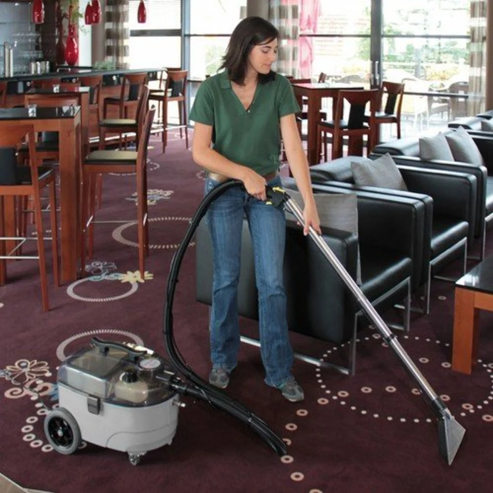 Uređaj je dizajniran za upotrebu u kancelarijama, klinikama, kino dvoranama, domaćinstvima i auto-detailing centrima. Odvojene funkcije prskanja i usisavanja mogu se aktivirati zasebno, dok odvojeni spremnici za čistu i prljavu vodu osiguravaju higijenski i efikasan rad.