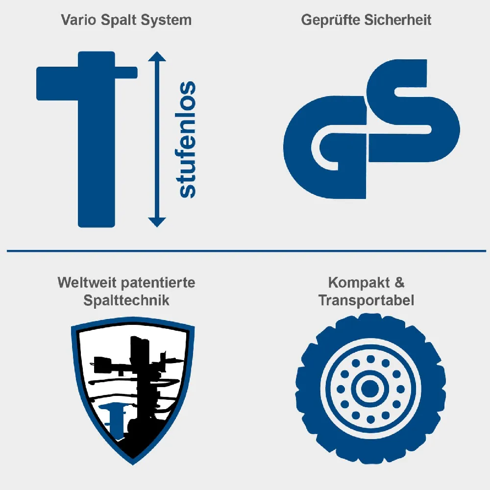 Uređaj dolazi s integrisanim okretnim stolom, podizačem trupaca i sigurnosnim držačima s obje strane. Čelična konstrukcija otporna na torziju, sistem rada sa obje ruke i GS certifikat garantuju maksimalnu sigurnost korisnika. Zahvaljujući Vario gap sistemu i velikom klinu dimenzija 190 x 85 mm, Compact 15t lako obrađuje drvo različitih veličina bez gubitka vremena i snage.