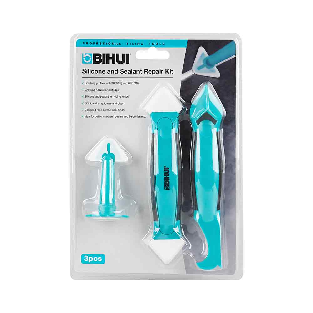 Bihui STARK3 je komplet od tri dijela namijenjen za rad sa silikonom i zaptivnim materijalima. Set sadrži nož za uklanjanje silikona i zaptivača, mlaznicu za precizno injektiranje uloška, te uglačivač fugni i zaptivača. Završni profili od 3R (1/8R) i 6R (1/4R) omogućavaju urednu i savršenu završnu obradu. Set je dizajniran za brzo i jednostavno korištenje te lako čišćenje nakon upotrebe.