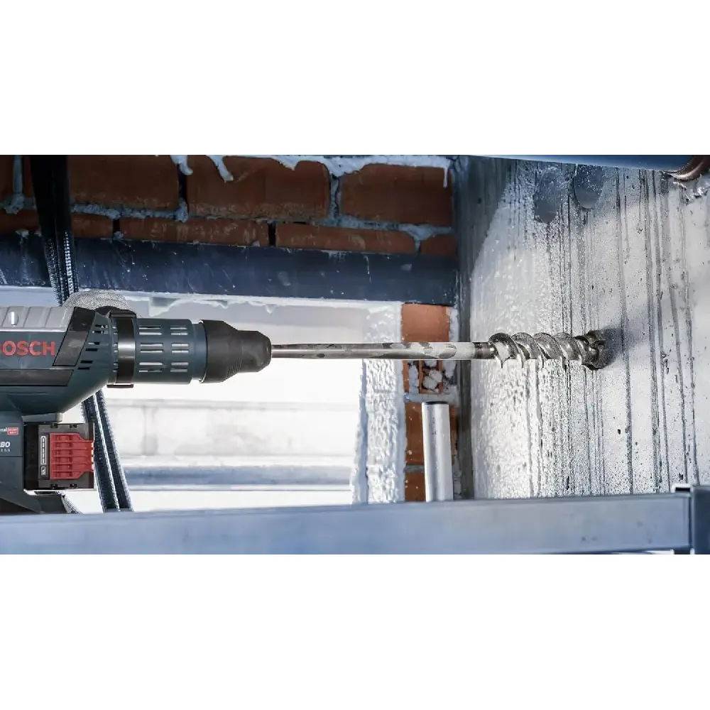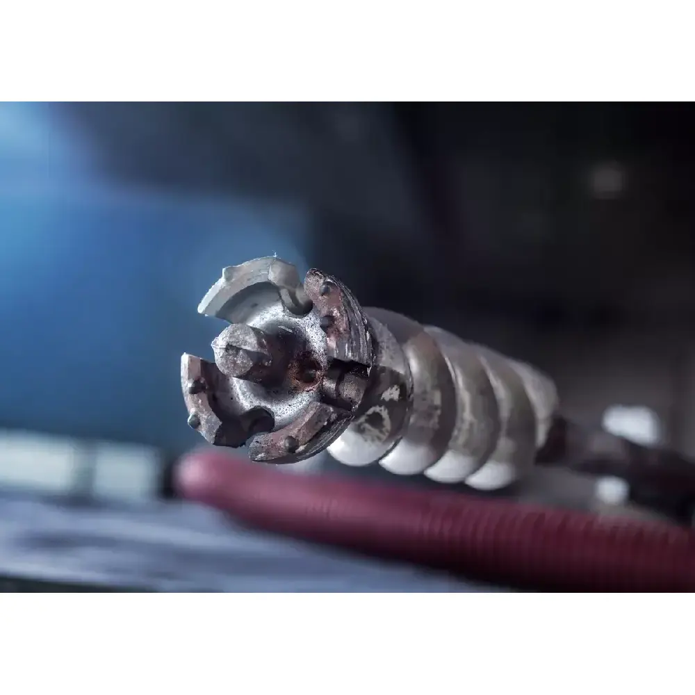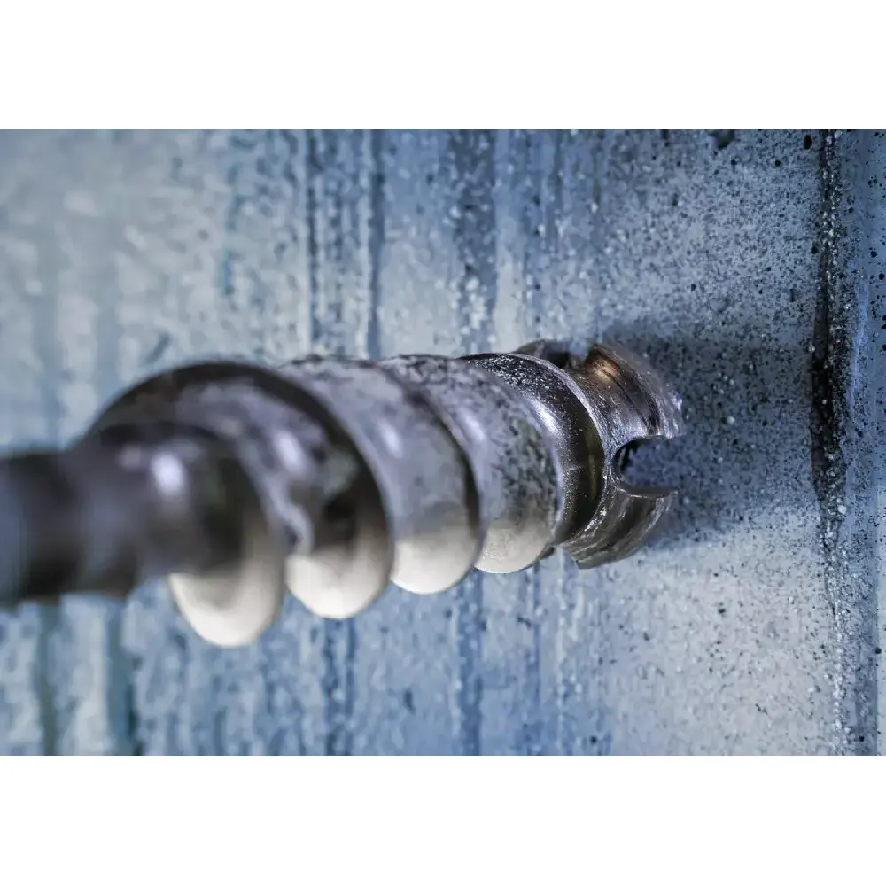 PRO SDS max Break Through svrdlo je visokoefikasno rješenje za bušenje velikih prolaznih rupa u betonu, punoj opeci i građevinskim blokovima. Zahvaljujući naprednom dizajnu i visokokvalitetnim materijalima, ovo svrdlo je posebno prilagođeno zahtjevima građevinara, električara i instalatera koji često rade na instalaciji klima, kablova i cijevi kroz čvrste građevinske materijale.