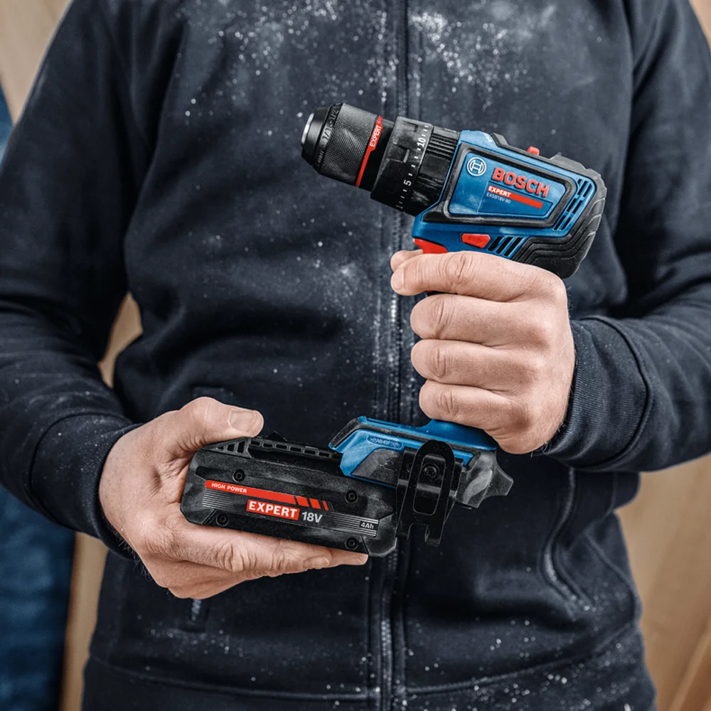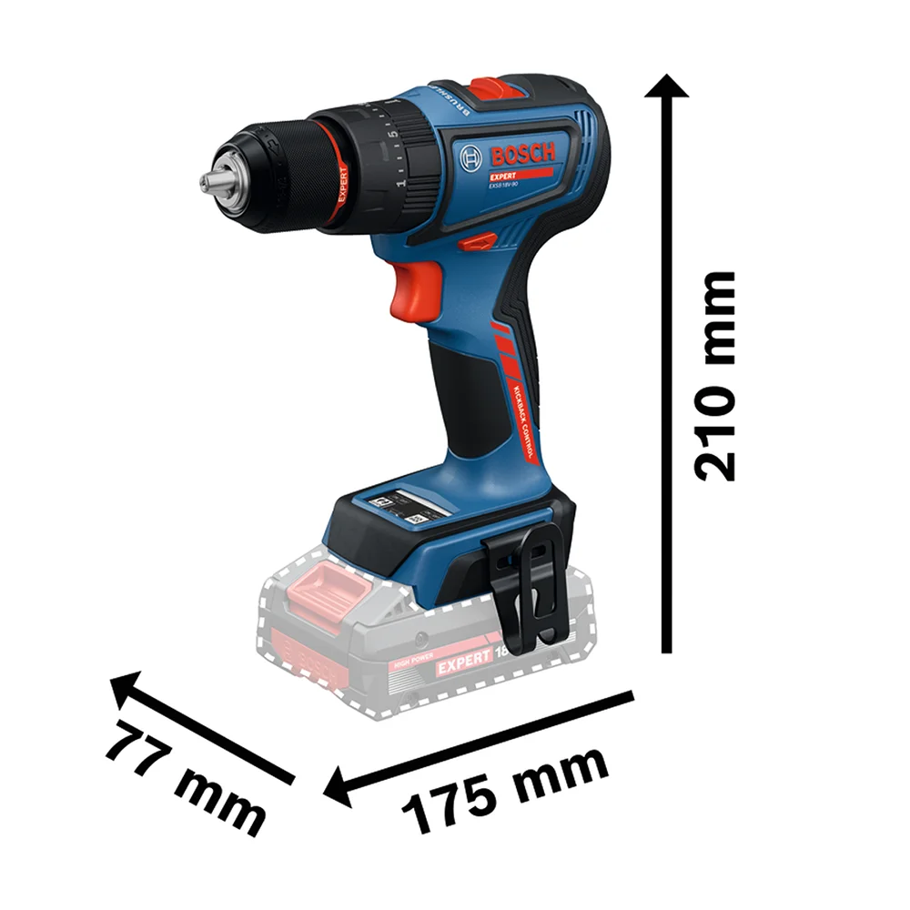 Bosch EXPERT EXSB18V-90 je snažna akumulatorska udarna bušilica-odvijač dizajnirana za profesionalne korisnike kojima su potrebni visoka snaga, precizna kontrola i sigurnost pri radu. Zahvaljujući snažnom motoru bez četkica, alat pruža vrhunske performanse uz mekani moment od 36 Nm i tvrdi moment od 65 Nm, brzinu do 2.100 min⁻¹ te maksimalno 29.500 udaraca u minuti za brzo i učinkovito bušenje u zidarstvu.