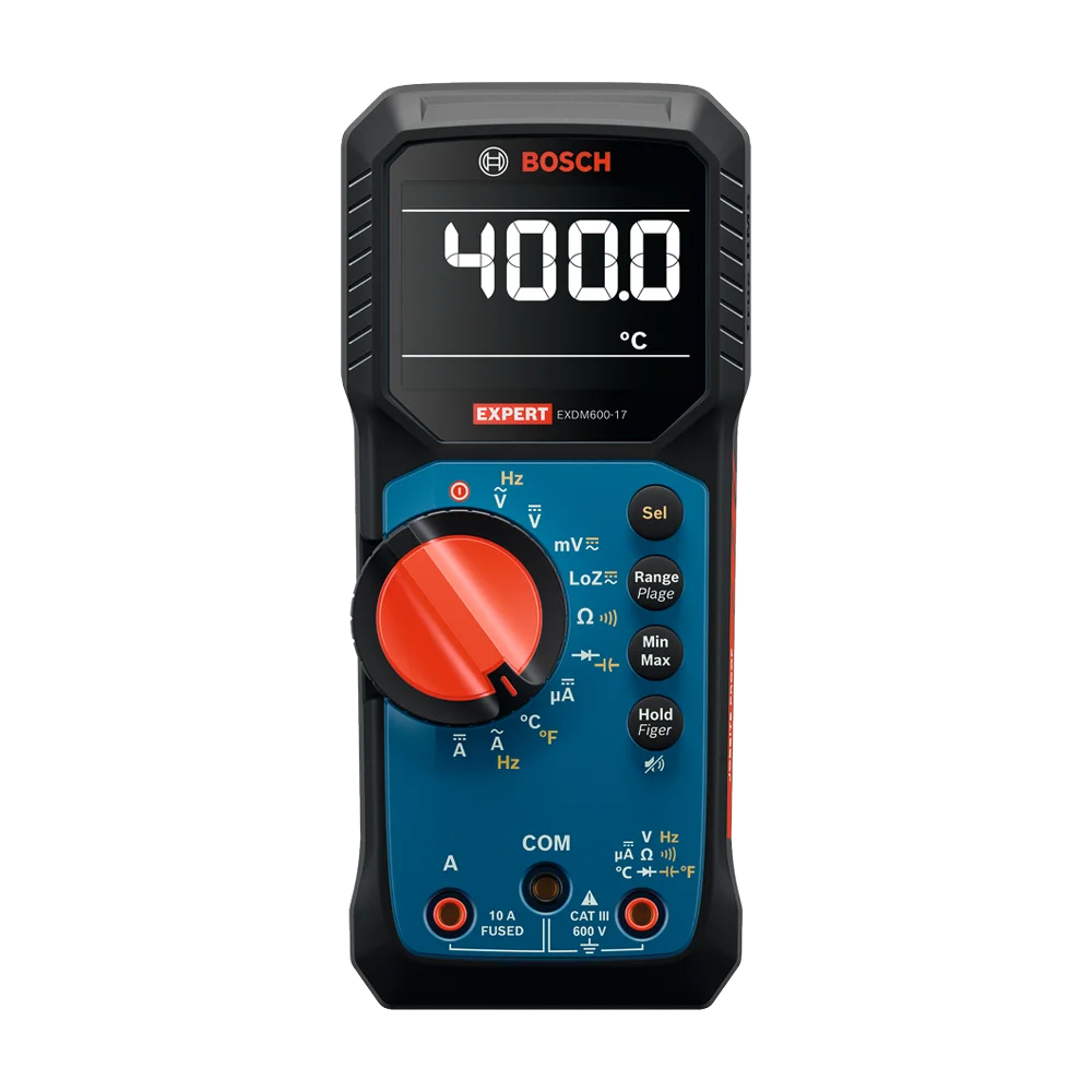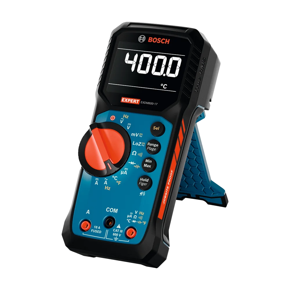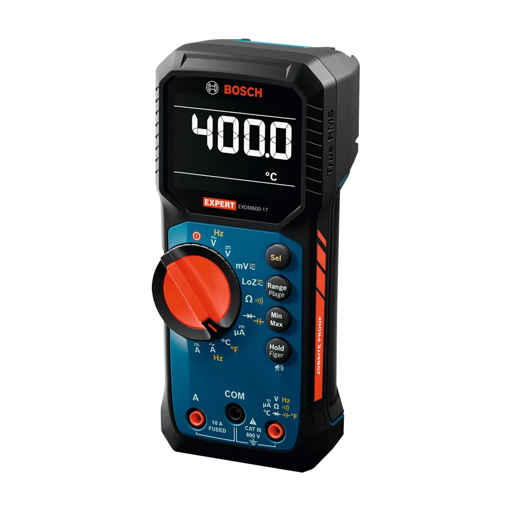 Bosch EXPERT EXDM600-17 je napredni digitalni multimetar razvijen za profesionalce kojima su potrebni precizna mjerenja, visoka otpornost i pouzdan rad na gradilištu ili u servisnim intervencijama. Zahvaljujući IP65 zaštiti, otpornosti na pad s visine do 2 m, sigurnosnoj kategoriji CAT III 600 V i dvostrukom izvoru napajanja, ovaj instrument je prilagođen zahtjevnim radnim uslovima.