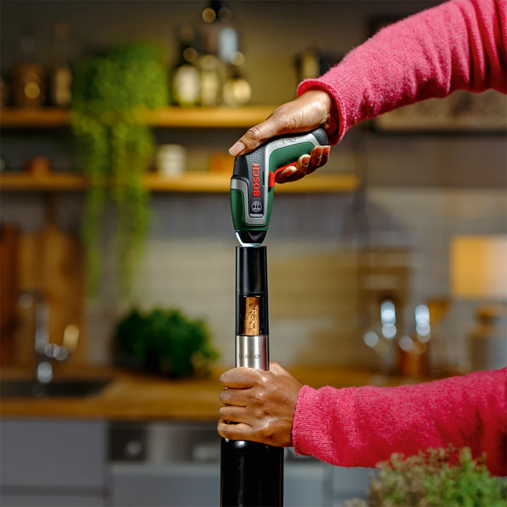 Bosch IXO kolekcija – nastavak vadičepa je praktičan i elegantan dodatak koji Bosch IXO odvijač pretvara u praktično pomagalo za brzo i jednostavno otvaranje boca vina. Dizajniran je za bezbrižno korištenje u opuštenim trenucima, druženjima i zabavama, gdje funkcionalnost spaja s atraktivnim izgledom.