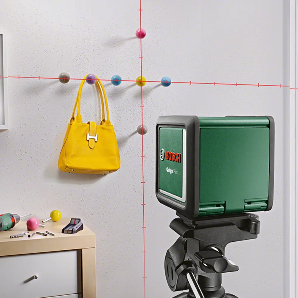 Bosch Quigo Plus je kompaktan i praktičan laser za križne linije namijenjen preciznom poravnavanju i kreativnom oblikovanju zidnih prostora. Omogućava istovremenu projekciju vodoravne i okomite laserske linije, što ga čini idealnim alatom za poravnavanje dekoracija, slika, polica, pločica i tapeta. Zahvaljujući automatskom niveliranju, linije ostaju potpuno ravne čak i kada je uređaj postavljen na blago neravnoj površini.