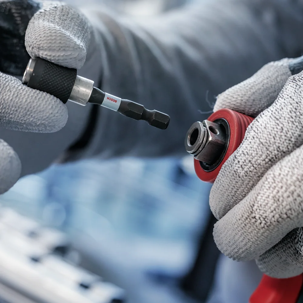 Zahvaljujući šesterostranom prihvatu od 1/4 inča otpornom na udarce, držač je prilagođen za intenzivnu upotrebu u udarnim stezačima i akumulatorskim izvijačima. Konstrukcija je razvijena kako bi izdržala visoka opterećenja i produžila vijek trajanja alata i nastavaka.