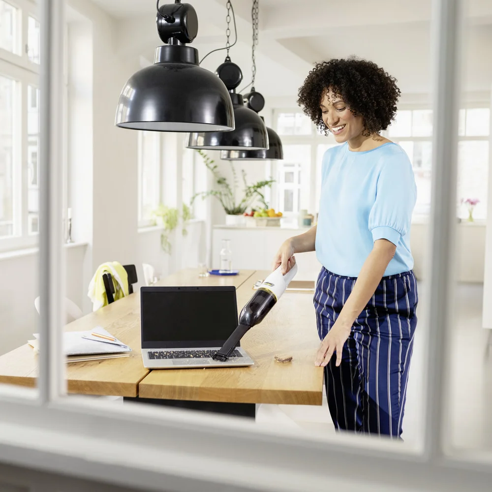Kärcher CVH 2 je kompaktan i lagan akumulatorski ručni usisivač, idealan za brzo i jednostavno uklanjanje sitne prljavštine u domaćinstvu i automobilu. Zahvaljujući snažnoj usisnoj moći i praktičnom dizajnu, savršeno je rješenje za mrvice, prašinu i dlake na namještaju, podovima, radnim površinama i u unutrašnjosti vozila.