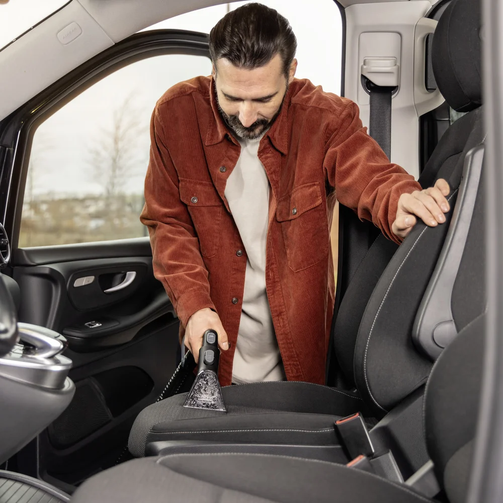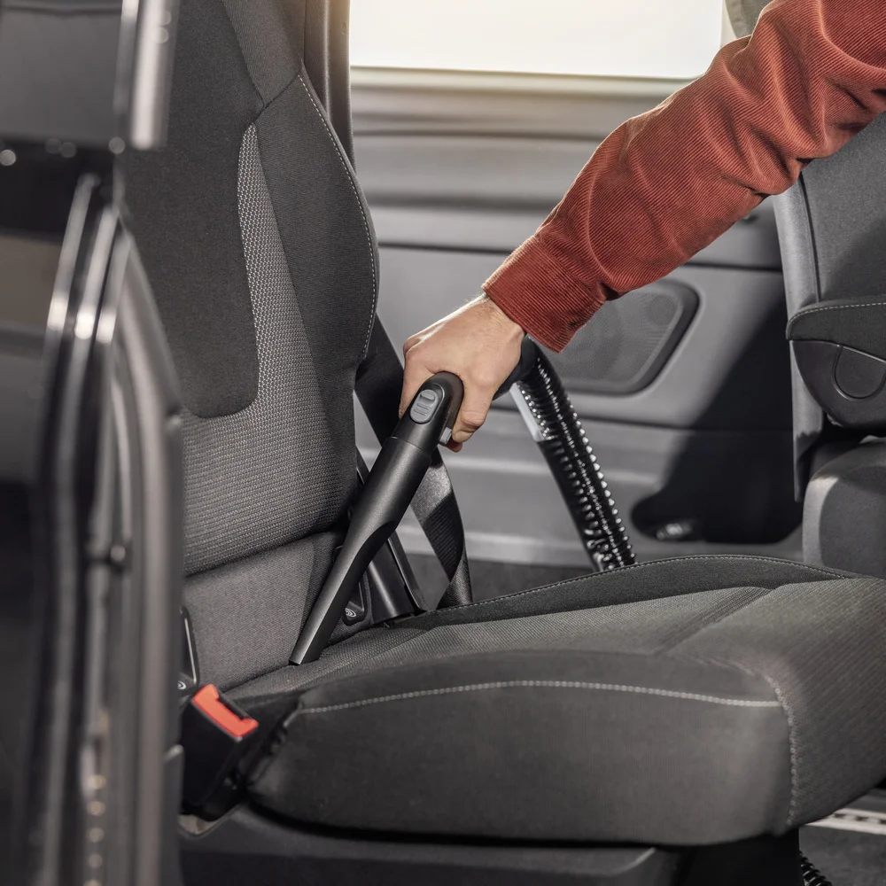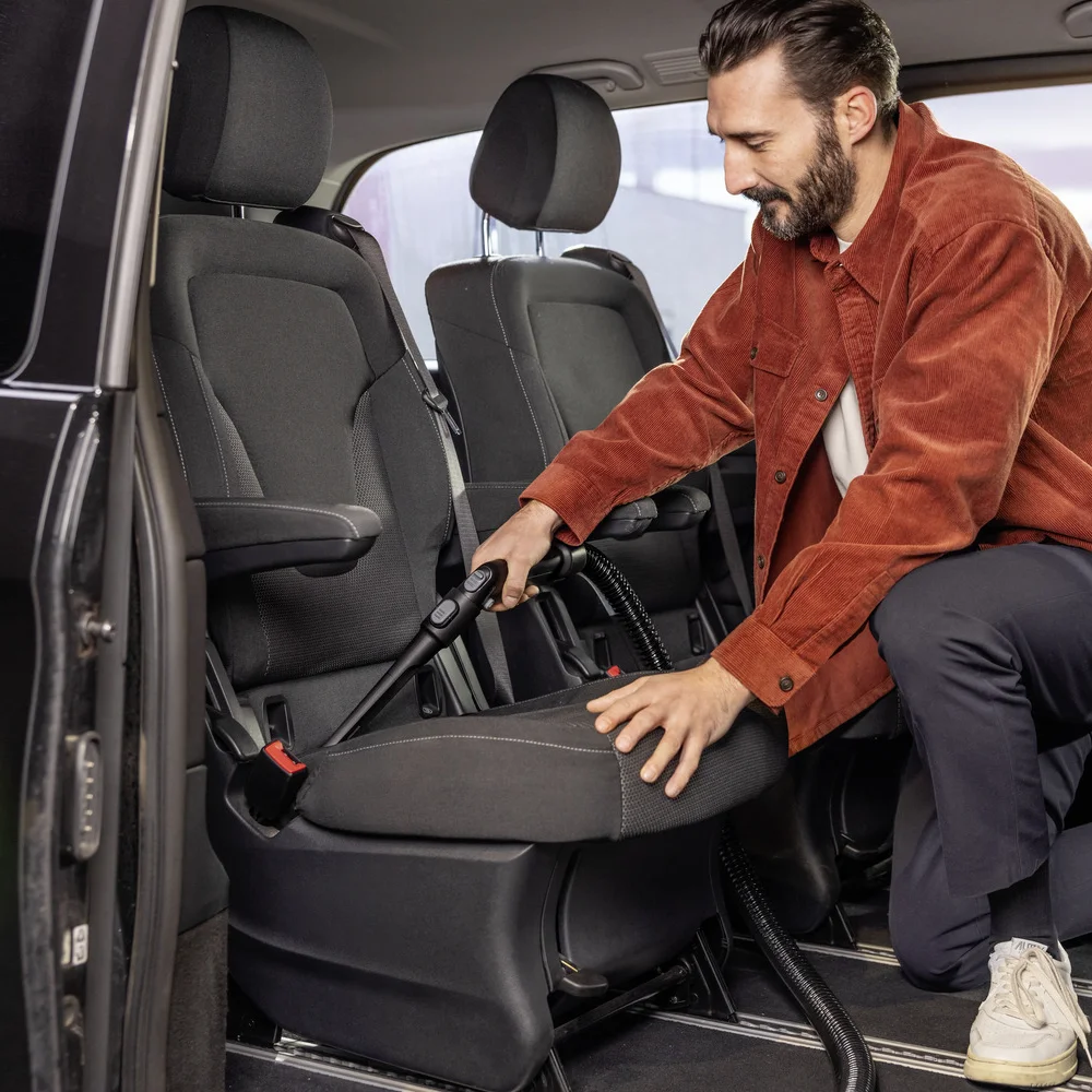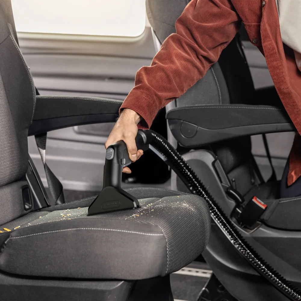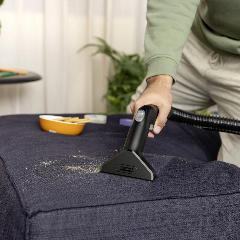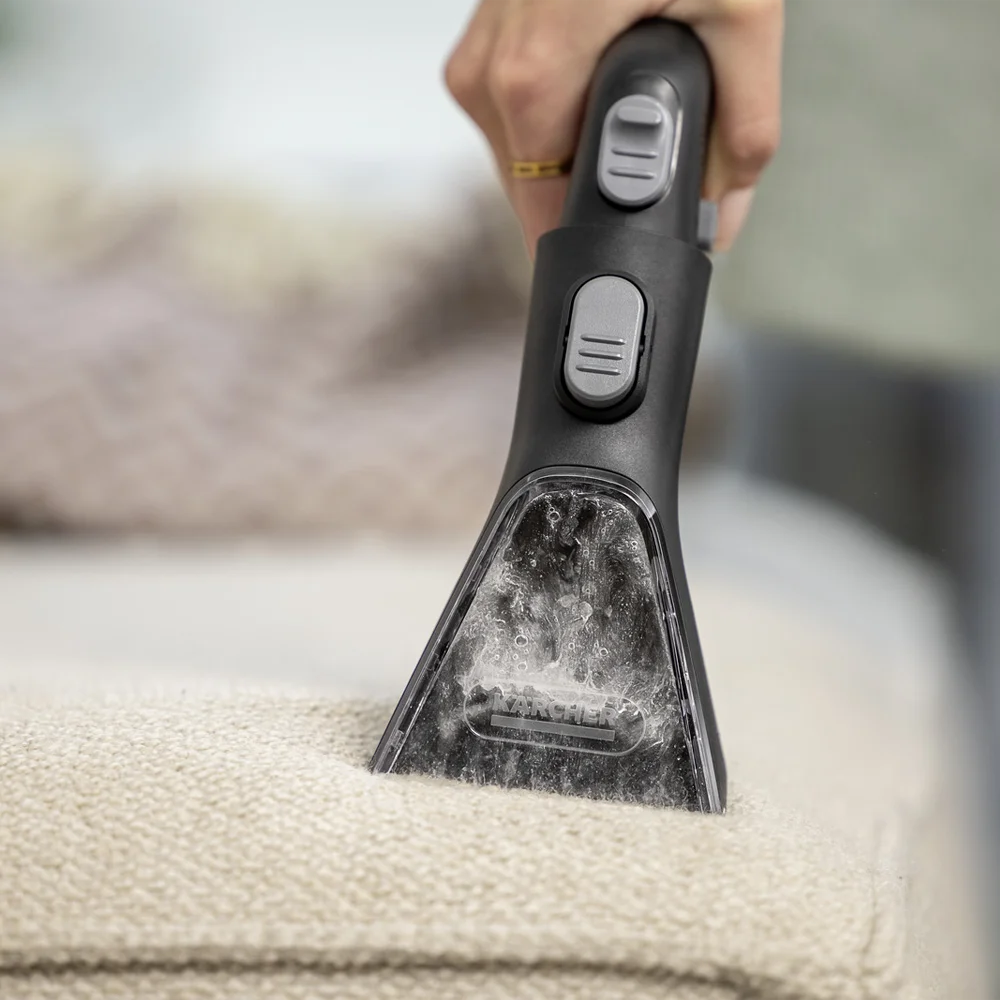 SE 5 Car je multifunkcionalni 3-u-1 uređaj: osim dubinskog pranja tekstila, može se koristiti i kao punopravni usisivač za mokro i suho usisavanje uz odgovarajući pribor. Dvostruki sistem rezervoara (4 l svježe i 4 l prljave vode) omogućava higijensko pražnjenje bez kontakta s nečistoćom. Ultra-fleksibilno 2-u-1 crijevo s integrisanim dovodom vode osigurava praktično i kontinuirano raspršivanje tokom čišćenja većih površina.