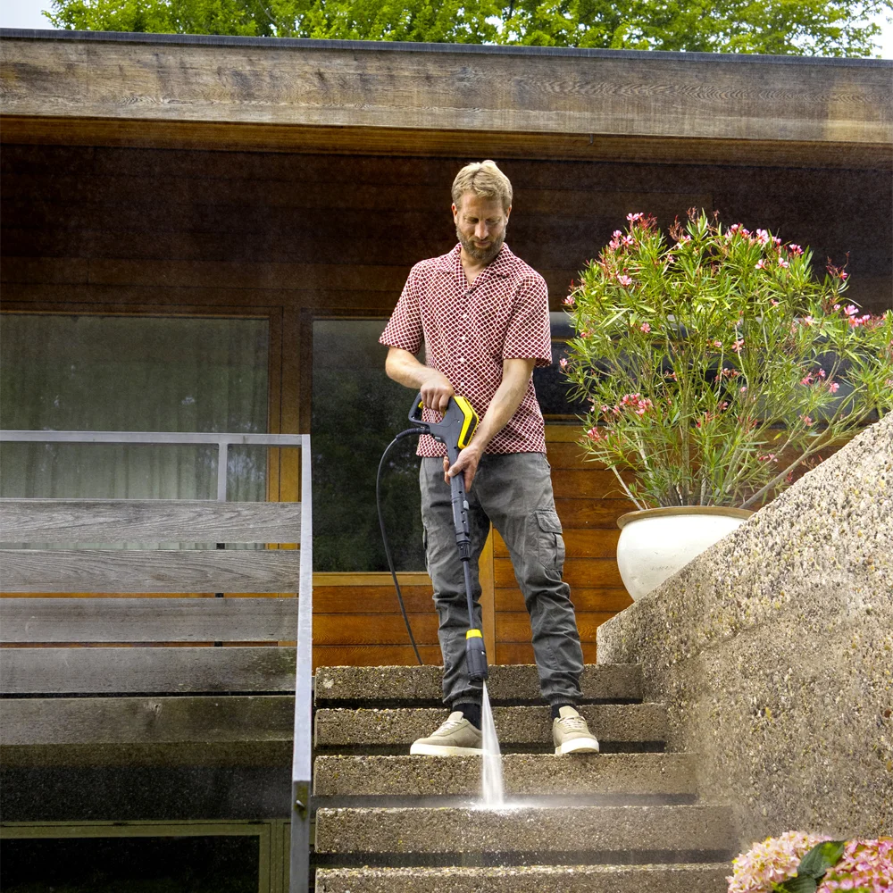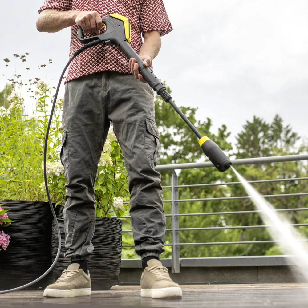 G 180 Q Comfort Connect pištolj s LCD ekranom omogućava izbor između tri nivoa pritiska, uključujući eco!Mode, kao i dva nivoa doziranja deterdženta. COMFORT!Hold funkcija značajno smanjuje napor držanja tokom rada, dok 180° podešavanje ugla pištolja poboljšava ergonomiju i fleksibilnost. Zahvaljujući Bluetooth povezivanju, pritisak se može podešavati putem pametnog telefona kroz Kärcher Home & Garden aplikaciju, koja nudi savjete, vodiče i podršku za optimalne rezultate čišćenja.