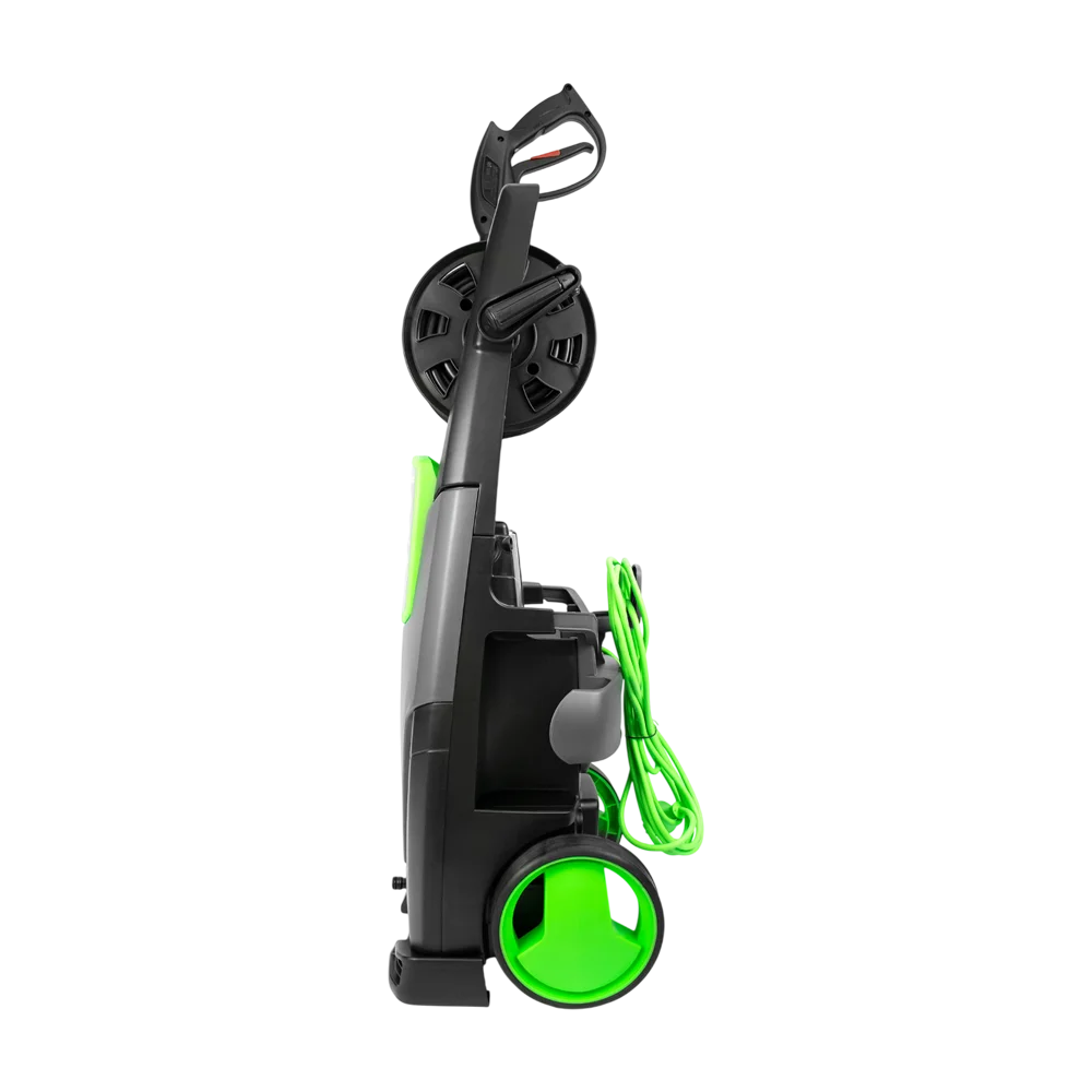 Praktična kolica s ergonomskom ručkom, integrirani kolut za crijevo i prostori za odlaganje pribora omogućavaju jednostavno rukovanje, transport i skladištenje. Brzi priključci na pištolju i priboru dodatno olakšavaju promjenu nastavaka tokom rada.