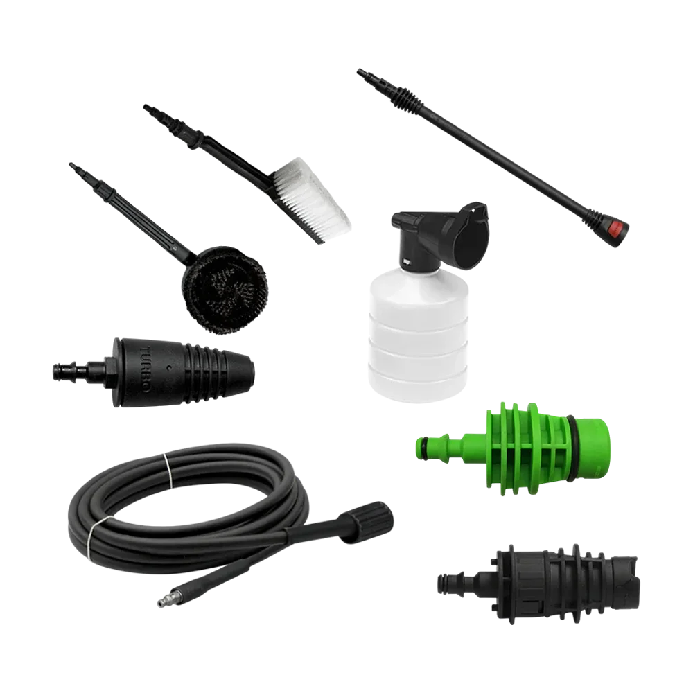 Uređaj je opremljen visokokvalitetnom pumpom s tri klipa i aluminijskom glavom s ugrađenim by-pass ventilom, što osigurava dug vijek trajanja i pouzdan rad. Automatic Stop System automatski zaustavlja motor kada se pištolj otpusti, smanjujući potrošnju energije i habanje komponenti.