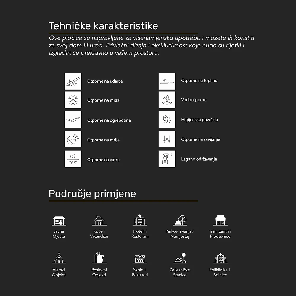 Glazirane porcelanske pločice predstavljaju jedan od najpouzdanijih i najtraženijih izbora za moderne stambene i komercijalne prostore. Proizvode se od gustog, visokokvalitetnog porcelanskog materijala koji se peče na vrlo visokim temperaturama, što im daje izuzetnu čvrstoću, nisku upojnost vode i otpornost na mrlje. Dodatni sloj glazure pruža zaštitu površine, pojačava vizuelni efekat i produžava trajnost, čineći ih idealnim rješenjem za kupatila, kuhinje, hodnike i sve frekventne zone.