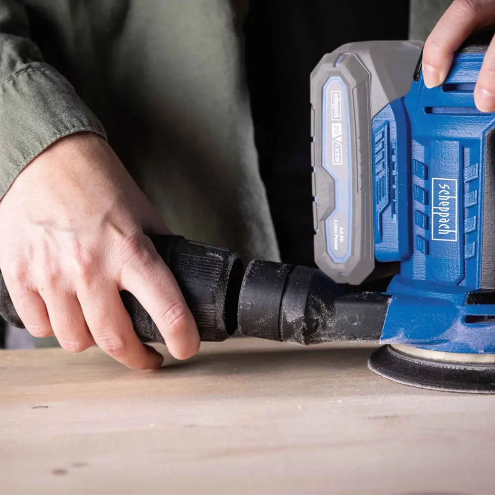 Nizak profil i mala težina olakšavaju rukovanje, dok soft start omogućava siguran početak rada. Prekidač otporan na prašinu i integrisana vrećica za skupljanje prašine osiguravaju čistiju i sigurniju radnu okolinu. Regulacija brzine vrši se pomoću praktičnog točkića. Kao dio Scheppach IXES 20V serije, kompatibilna je sa svim baterijama i punjačima iz iste linije.