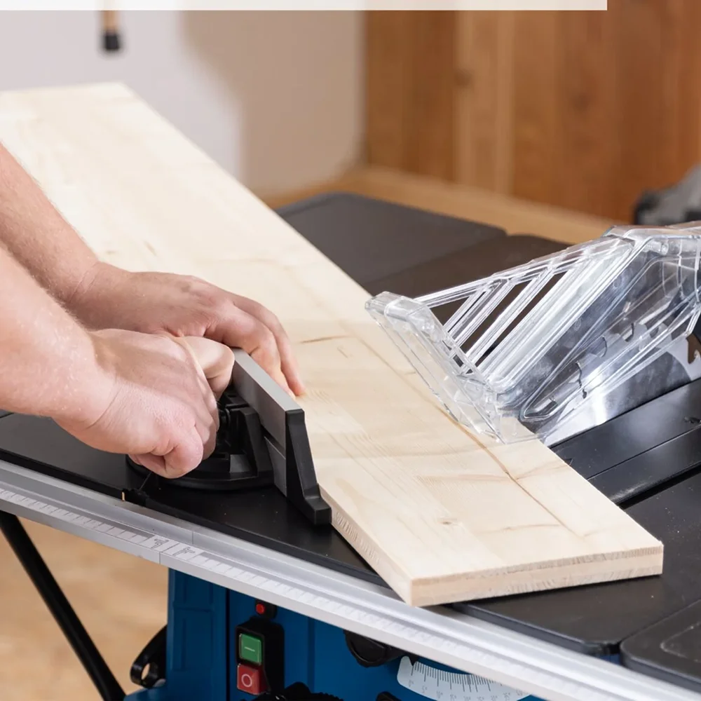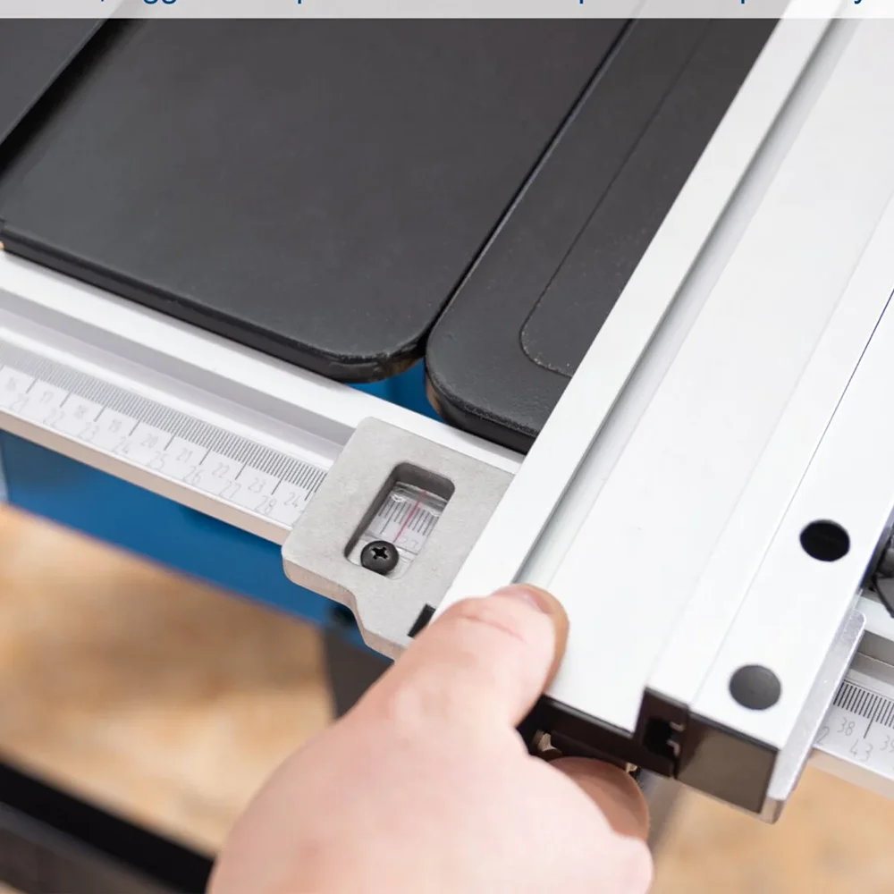 Velika prednost ove pile je njena svestranost. Produžeci stola sa obje strane proširuju radnu površinu na 935 x 630 mm, što omogućava stabilno rukovanje većim obradcima. Uzdužni graničnik sa skalom omogućava brzo i precizno podešavanje širine reza, dok je poprečna vodilica podesiva u rasponu od -60° do +60°, što je čini idealnom za izradu preciznih kosih i ugaonih rezova. Integrisani priključak za usisavanje osigurava čistiji radni prostor i bolju vidljivost linije reza.